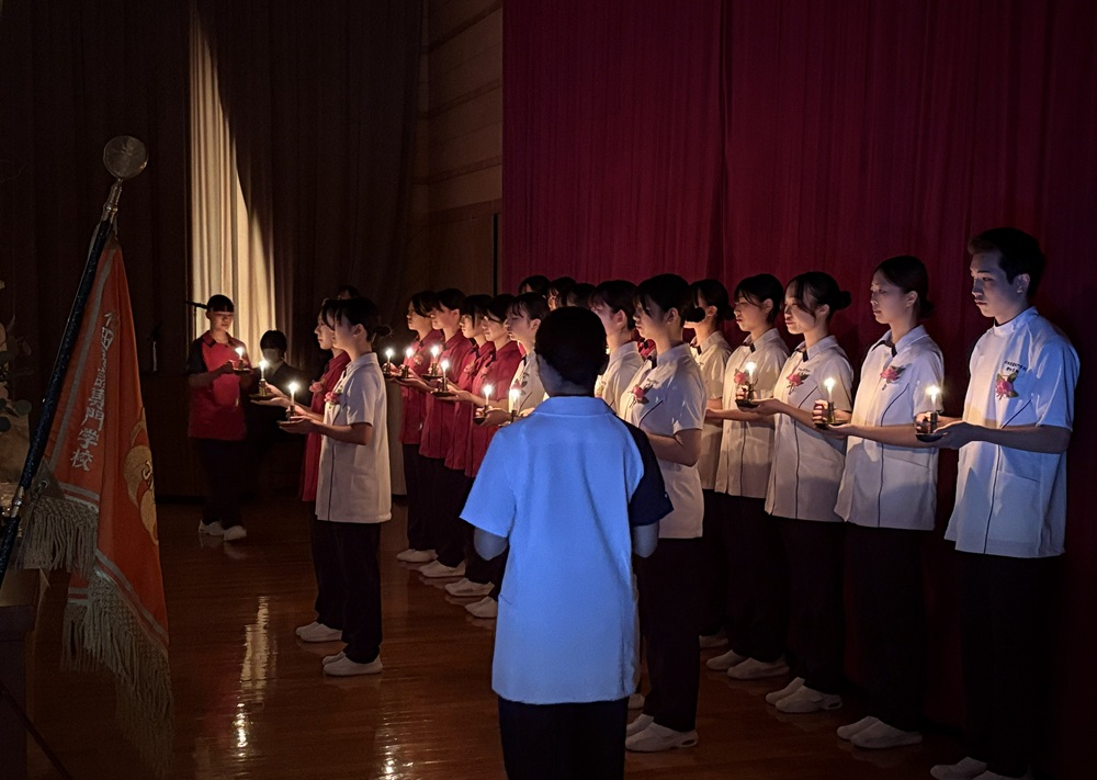 11月15日(土) 戴灯式が挙行されました。 57回生(1年生)27名は、ナイチンゲールより灯を頂き、 「優しさと思いやりを忘れず 信頼される看護師を目指す」ことを誓いました。